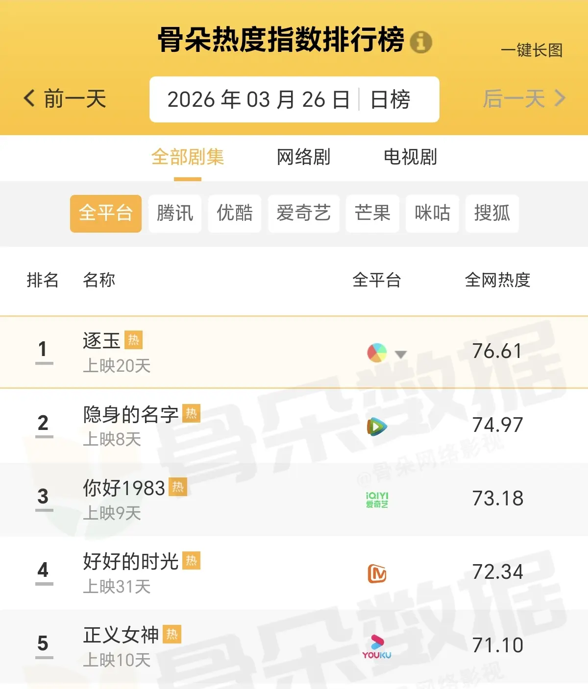 电视剧全网热度榜,你在追哪一部?码字不易,欢迎关注点赞,留言讨论。